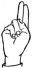 На ћирилици написано СРЕДОЈЕ ЛАПЧЕВИЋ састоји се из 15 слова [?]. Исписано ћириличном једноручном азбуком за глувонеме: